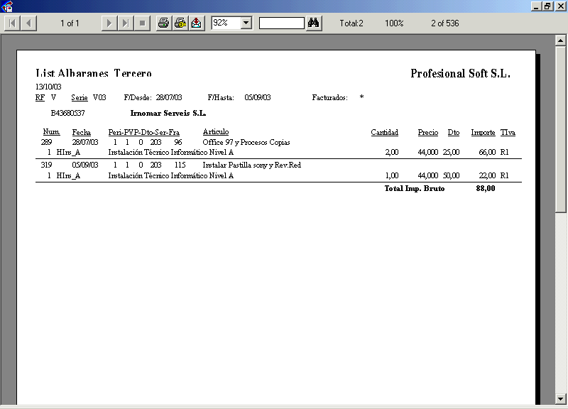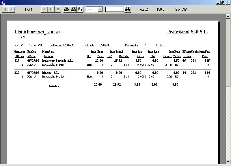 - Listado Albaranes-Lineas