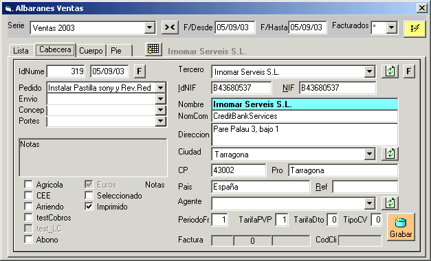 - AlbaranesVentas.Cabecera