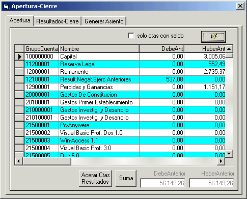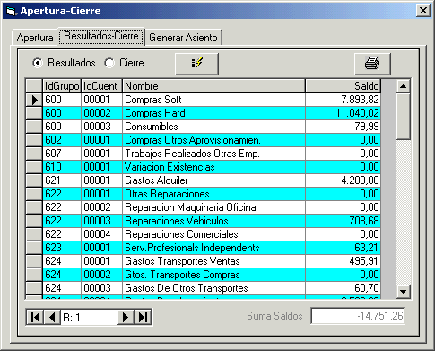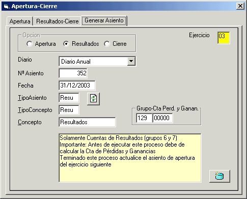 Proceso anual para obtener la cuenta de resultados y la apertura y cierre del ejercicio