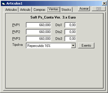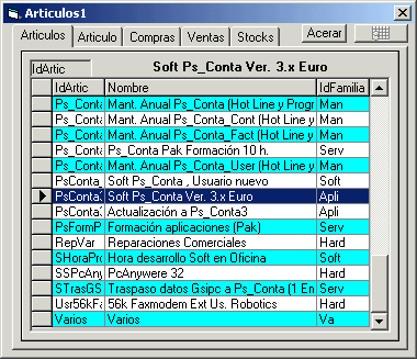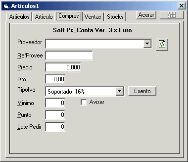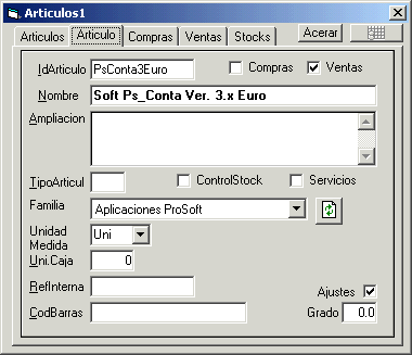 Mantenimiento de las tablas de Articulos de compras y ventas