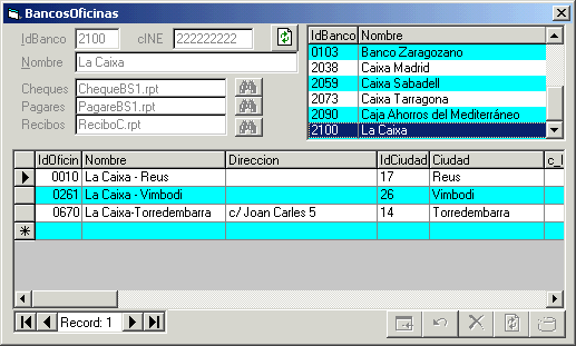 Mantenimiento de las tablas de codificacion de los Bancos y sus Oficinas