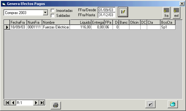 Mantenimiento de las Tablas de los propios bancos de la empresa y la generacion de efectos de facturas