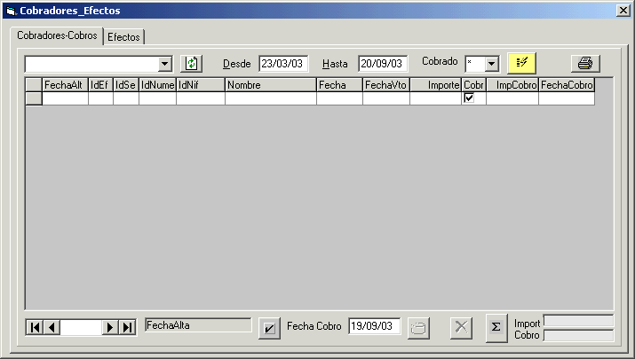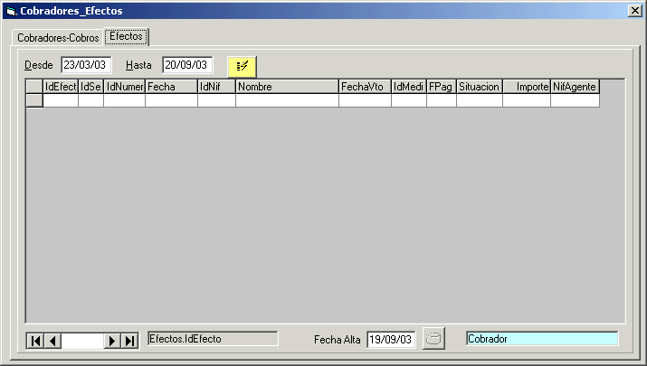 Mantenimiento de las tablas de Cobradores y la asignación de Efectos