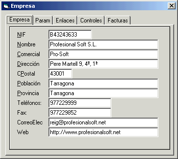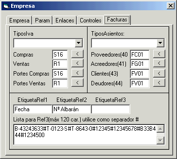 Mantenimiento de la tabla de Empresa, controles y tipos de asiento por defecto