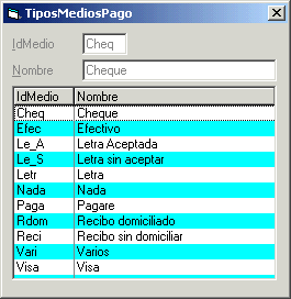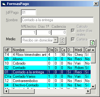 Mantenimiento de la tabla de Medios de Pago y Formas de Pago para Facturas y Efectos