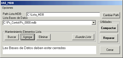 realizar con otros programas, hemos desarrollado la utilidad Util_Mdb la