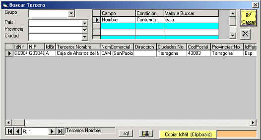 Terceros o bien para copiar su IdNif en el Clipboard y poder pegarlo en otro