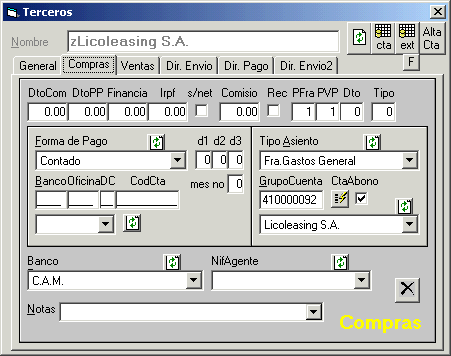 pestaña de compras y después en el botón [Alta Cta] , y en el caso de