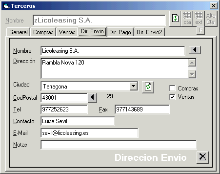 Terceros Dirección Envío