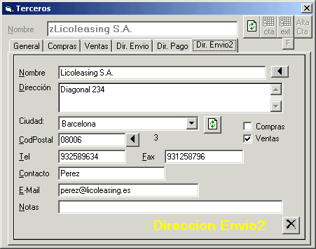 Terceros Dirección Envío 2
