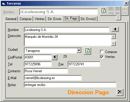 Terceros Dirección Pago
