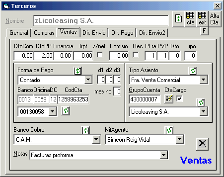 Utilizaremos el mismo formulario de Terceros para dar de alta los Agentes,